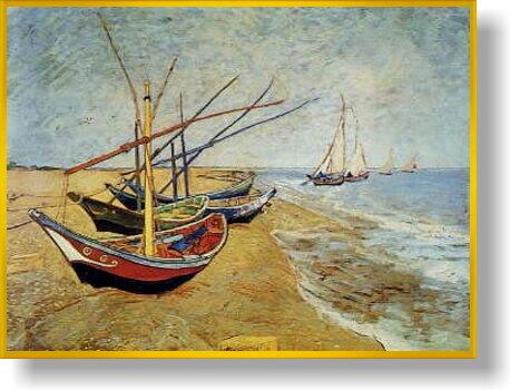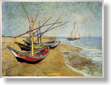 ◆ヴィンセント・ヴァン・ゴッホ *浜辺の舟 【ポスター+フレーム】約 61 x 81 cm
