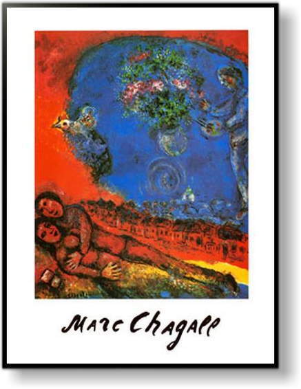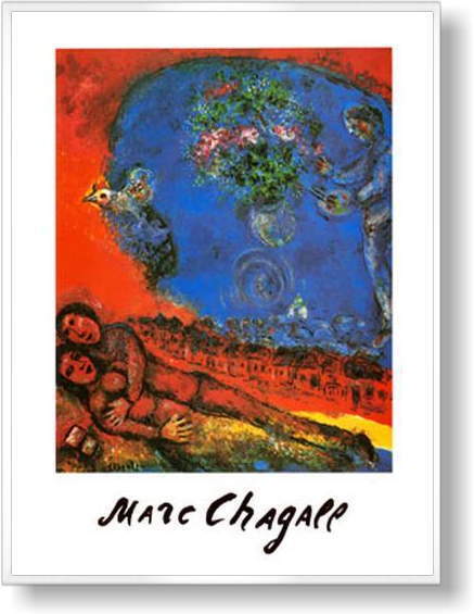 ◆シャガール *Couple of Lovers on a Red Backgroung【ポスター+フレーム】約 61 x 81 cm