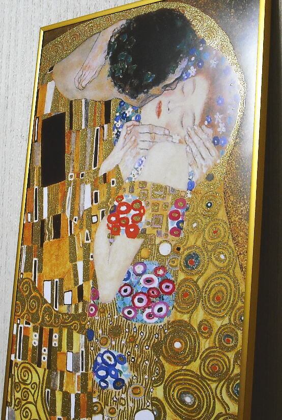 ◆クリムト *The Kiss 豪華版【ポスター+フレーム】約 100x35cm