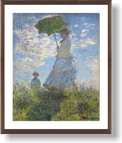 ◆クロード・モネ 散歩、日傘をさす女性 1875【ポスター+木製フレーム】約 64 x 77 cm