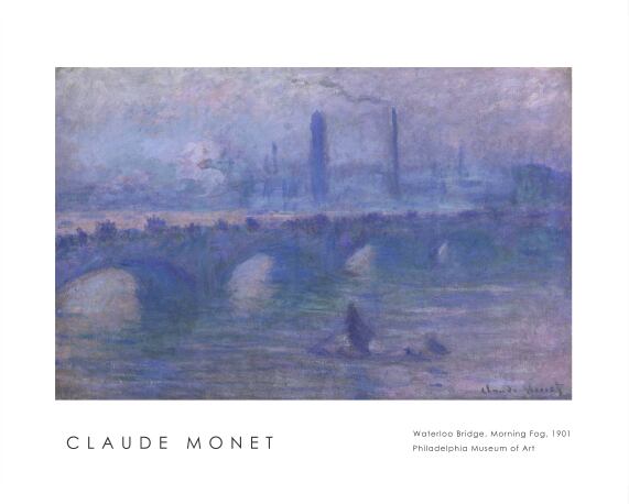 クロード・モネ ウォータールー橋、朝霧【ポスター+フレーム】約 41 x 51 cm