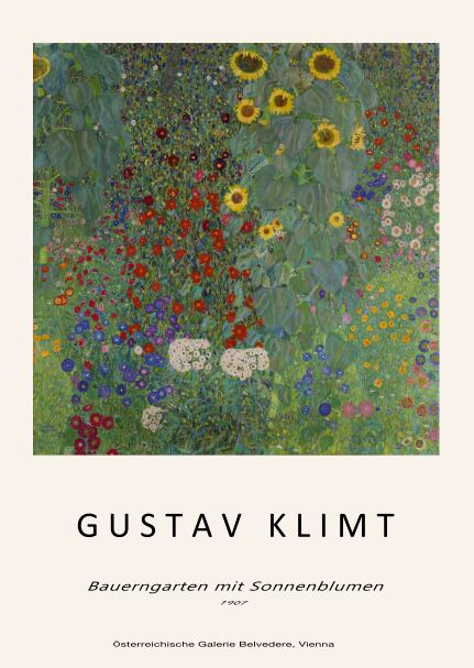 クリムト《 ひまわりとフラワーガーデン》【ポスター+フレーム】約 42 x 60 cm